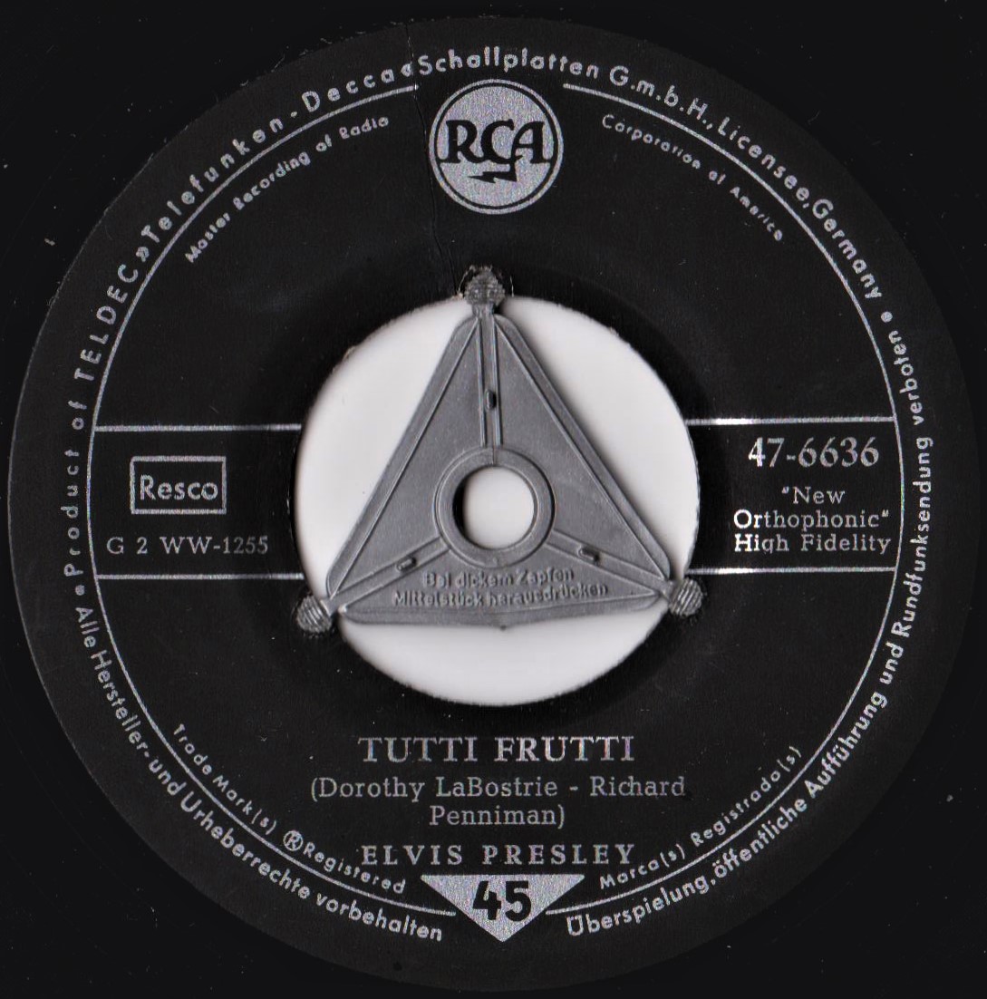 heute konnte ich nocheinmal die RCA 47-6636 für kleines Geld in gutem Zustand erstehen. Obwohl schon längst in der Sammlung vorhanden dann doch gekauft. Zuhause habe ich dann festgestellt, daß es einen kleinen Labelunterschied auf der Tutti Frutti Seite gibt - die Songautoren sind anders gesetzt.