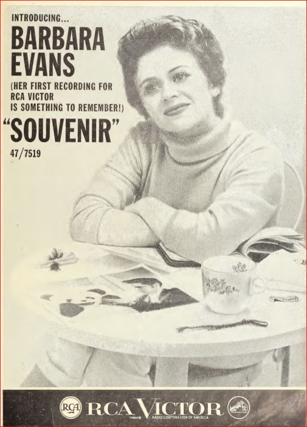 Es ist wieder einmal Zeit ein weibliches Thema zu eröffnen und da Barbara Evans nicht nur aus "Souvenirs" besteht hier einige Singles von ihr. Auch Pirko Manola hat in ihrer finnischen Heimat als Pirkko Mannola den Evans-Titel "Charlie Wasn't There" auf finnisch gecovert
