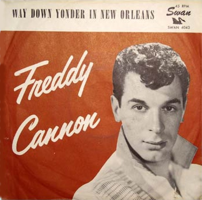 Frederico Anthony Picariello wurde am wurde am 4. Dezember 1940 in Lynn, Massachusetts, geboren. Für uns war er als Freddy oder Freddie Cannon ein wichtiger Star auf TOP RANK und COLUMBIA. In der Beat-Zeit gab es ihn unter anderem auch noch auf WARNER BROS. etc. Hier zwei wichtige Sammler-Singles von ihm aus 1960 bzw. 1961, die den Weg auf's deutsche Vinyl nicht geschafft haben