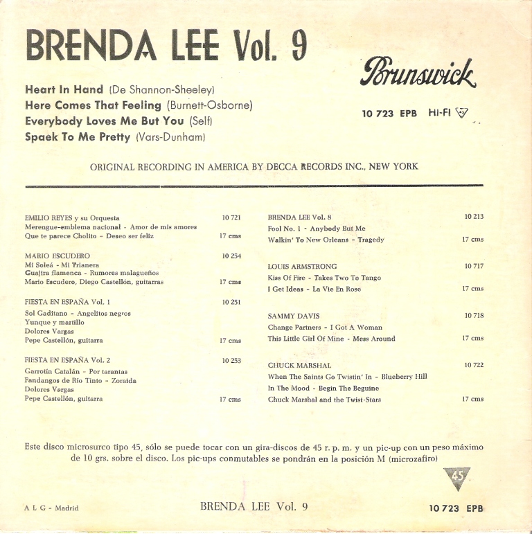 Hier einige internationale Scheiben von Brenda Lee. Freue mich über Ergänzungen!