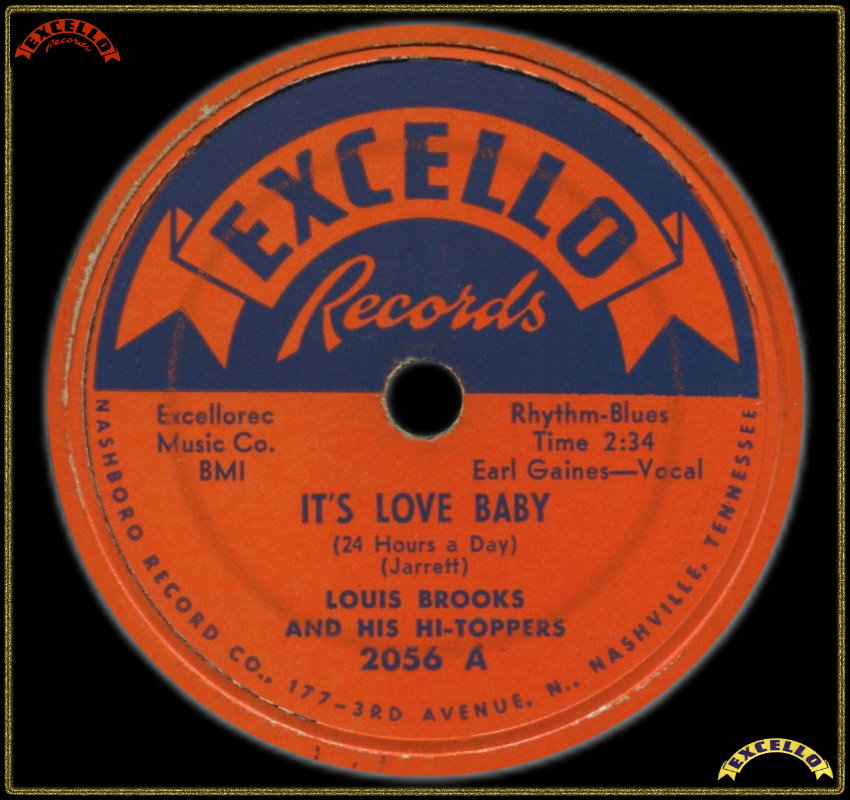 Sax player / band leader. Louis Brooks and his Hi-Toppers are best remembered for their smash Excello collaboration with singer Earl Gaines on "It's Love Baby (24 Hours A Day)", which went to # 2 on the R&B charts in 1955 and was success- fully covered by Ruth Brown (# 4) Hank Ballard and the MIdnighters (# 10).
