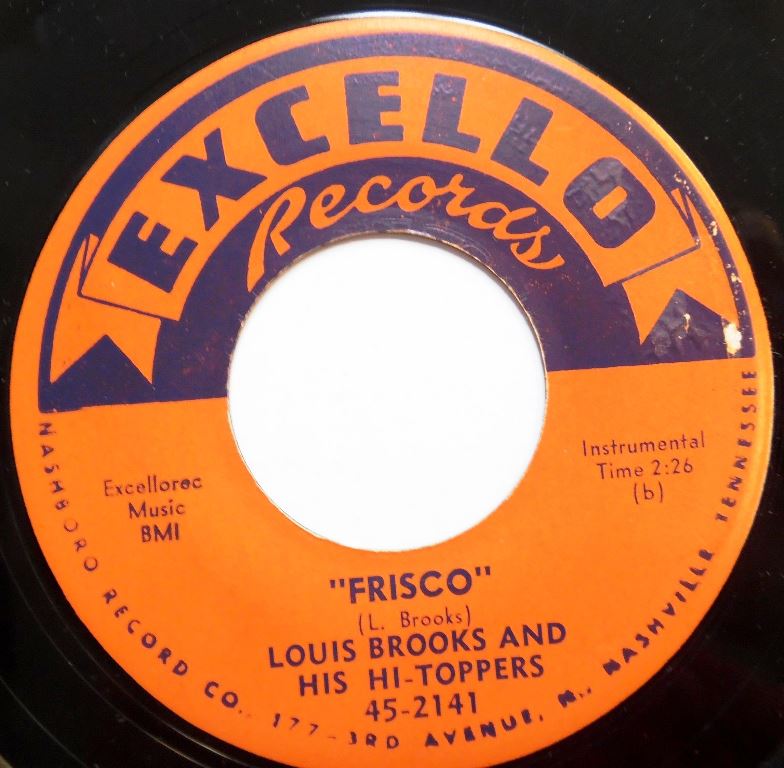 During the fifties, Brooks and his four-piece R&B combo recorded a series of solid instrumentals, revolving around Brooks' broad-toned tenor saxophone and the rollicking piano of Lovell "Knot" Phillips. They gained experience playing in a Nashville club called Sugar Hill. By the time they cut their first Excello sides in 1954, they were already an experienced studio outfit. For the small Tennessee / Republic label they played behind such artists as Christine Kittrell and recorded some instrumentals of their own. When not backing out-of-town artists, the Hi-Toppers were fronted by a succession of Nashville singers that included Earl Gaines, Larry Birdsong and Helen Hebb (sister of Bobby Hebb, who had a # 2 hit with "Sunny" in 1966). The Hi-Toppers didn't tour much beyond a couple hundred-mile radius of Nashville, as they preferred to focus on their regional fan base and session work. Louis Brooks in particular was loathe to accept any road gig that would keep him from clocking in on time for his day job at the First National Bank (a job from which he eventually retired just two days shy of his 50th anniversary there). So it is no wonder that he never achieved national fame, but as a studio player he and his band helped define the very sound of Excello Records, arguably the pre-eminent Southern R&B label of the 1950s.