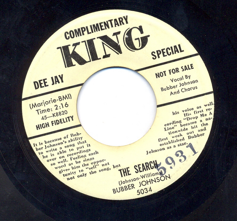 US - KING SINGLE NR: 5034 - MONO -BUBBER JOHNSON - mit The Search +Little Girl don´t cry++