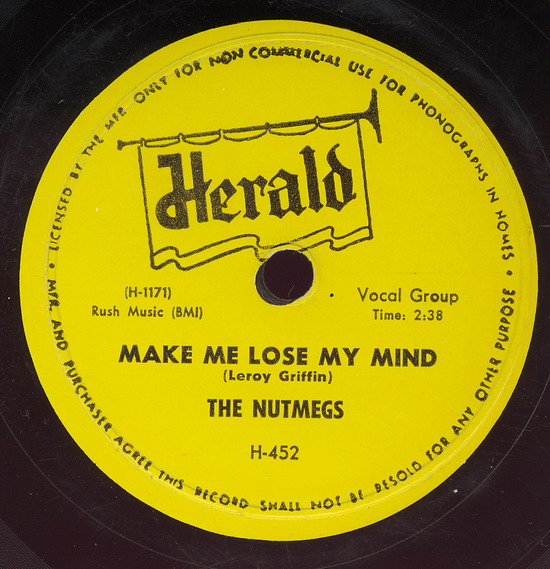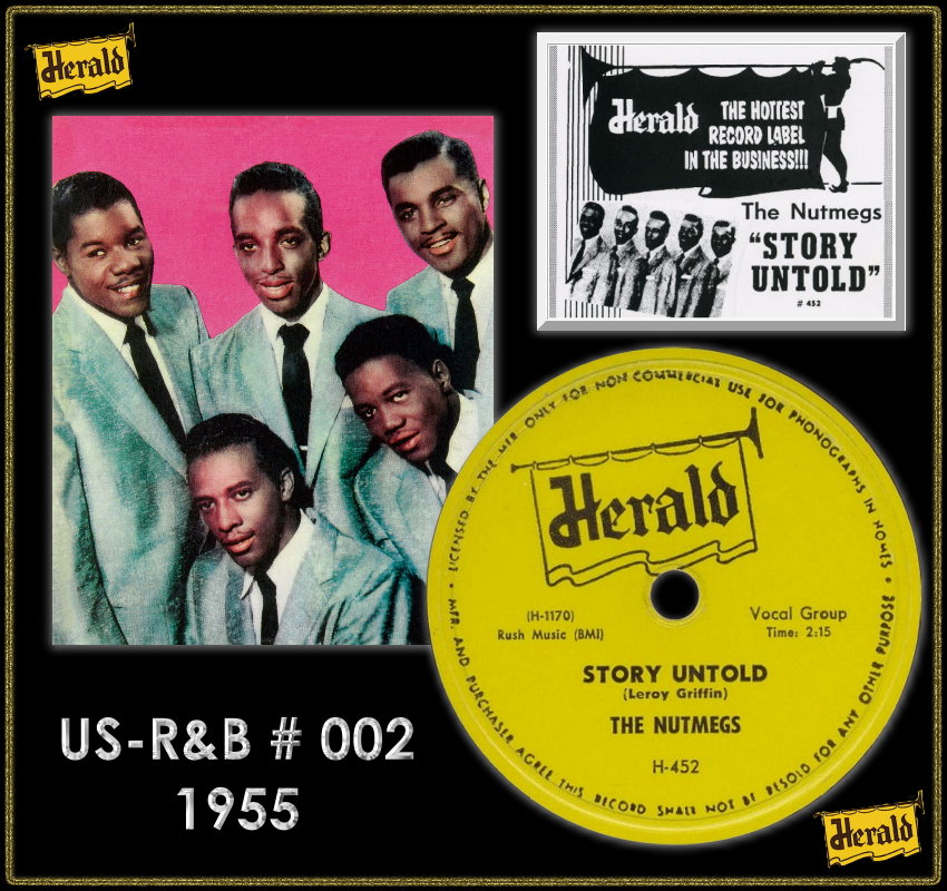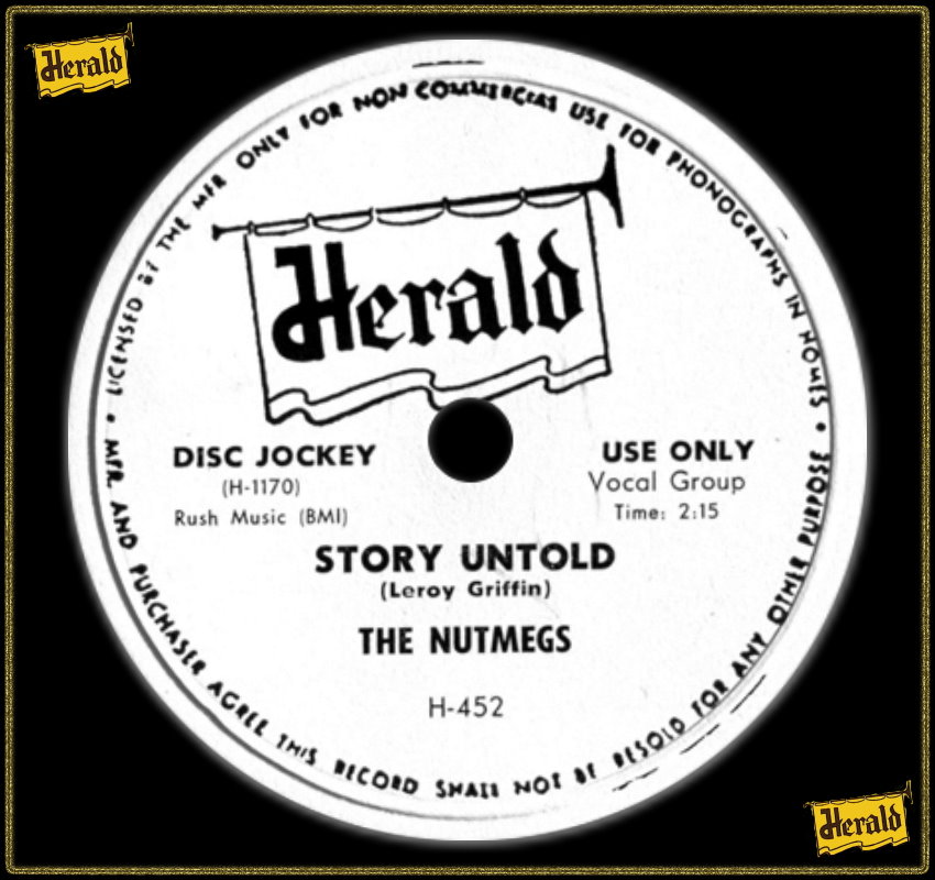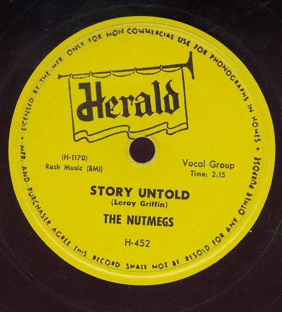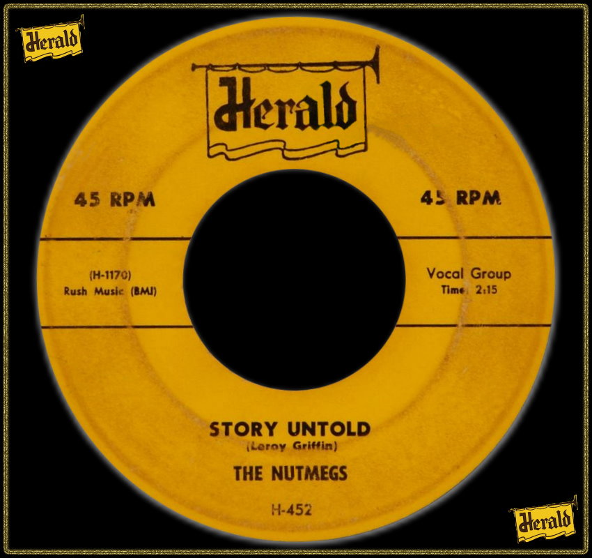 Nach einem starken Opening fremdländischer Harmonien machte der fliessende Lead-Tenor von Leroy Griffin aus dem 55’ Nutmegs-Hit “Story Untold“ einen Ostküsten Doo Wop-Klassiker. The Crew-Cuts, eine der führenden Coverspezialisten, coverten den Song für Mercury Records und eroberten einen # 16 der Pop-Charts und beeinträchtigten die Verkaufserfolge der Nutmegs beträchtlich. Mit dem Erfolg ihres Hits kamen The Nutmegs jedoch zu Auftritten im Apollo Theatre von New York und fanden Anklang beim DJ Alan Freed, der sie in seine Programme einbaute: „Here are the Nutmegs from New Haven, Connecticut and their hit on Herald Records, “Story Untold““. Ein Höhepunkt war dabei sicherlich auch der Autritt in der Brooklyn Paramount Show, zusammen mit The Moonglows, The Spaniels, The Harptones und Chuck Berry.