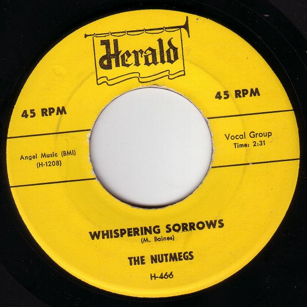Erwähnenswert unter den nicht so bekannten Scheiben sind “Whispering Sorrows“, “Betty Lou“ (Lead durch Coco Tyson), “My Story“, und das nach Westküste klingende “My Sweet Dreams“. Bei den frühen Titeln wurden The Nutmegs oftmals durch Leroy Kirkland’s studio band begleitet. Die Nutmegs wurden zur Kultgruppe der Ostküsten-Sammler-Szene.