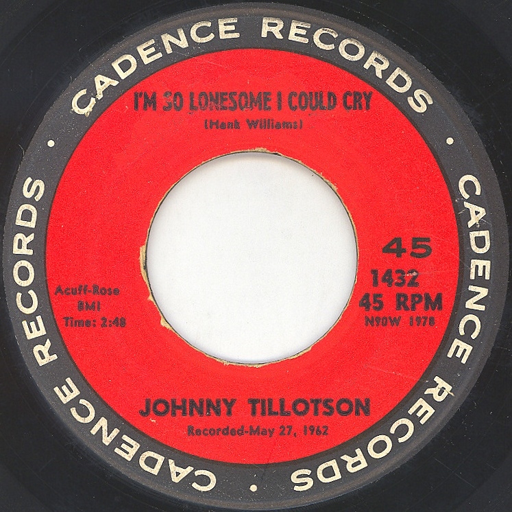 10 62....1432 (-----------)....JOHNNY TILLOTSON..I Can't Help It (If I'm Still In Love With You) Recorded May 26, 1962 (N90W 1977)/I'm So Lonesome I Could Cry Recorded May 27, 1962 (N90W 1978)