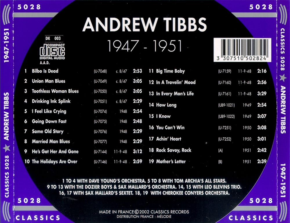 Tibbs' Erinnerung nach wollten sowohl Leonard als auch Goldberg, dass er Aufnahmen machte. Sie hätten ihn unter Vertrag genommen. Da er erst siebzehn gewesen sei, habe seine Mutter unterschreiben müssen. Als ihn Goldberg fragte, ob er "Texte" habe, wusste Tibbs nicht, was das bedeutete. Goldberg erläuterte ihm, er meine damit Songs, die Tibbs selbst geschrieben hatte. Tibbs hatte keine, aber seine Mutter sprang ein und lieferte ihm den ersten Song für Aristocrat, “Union Man Blues“.