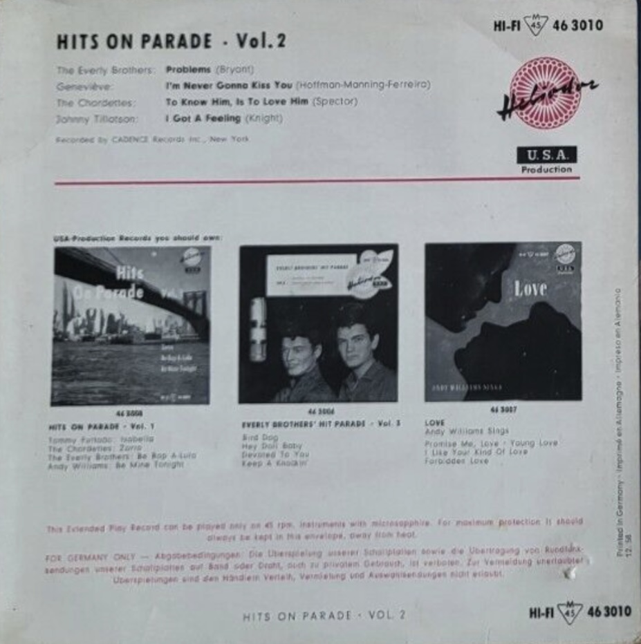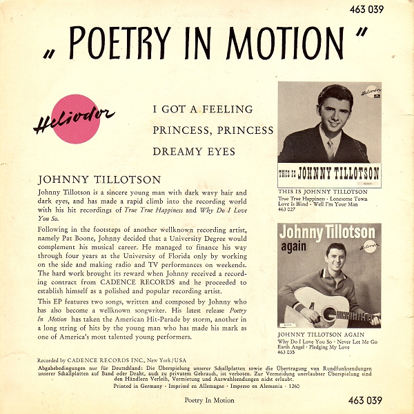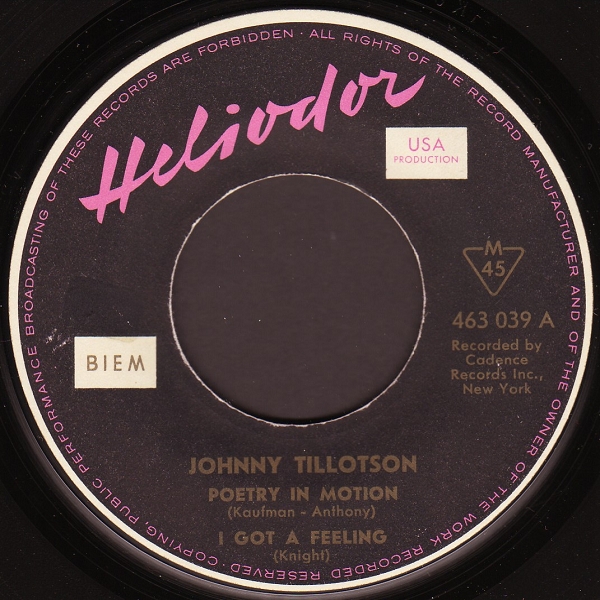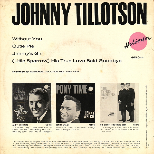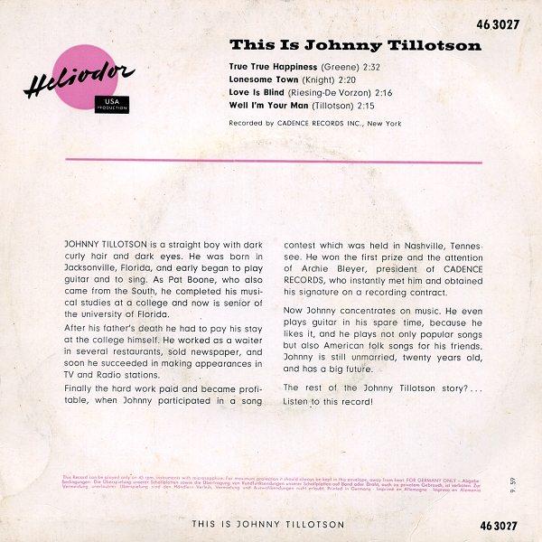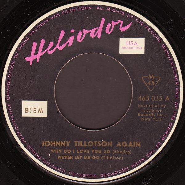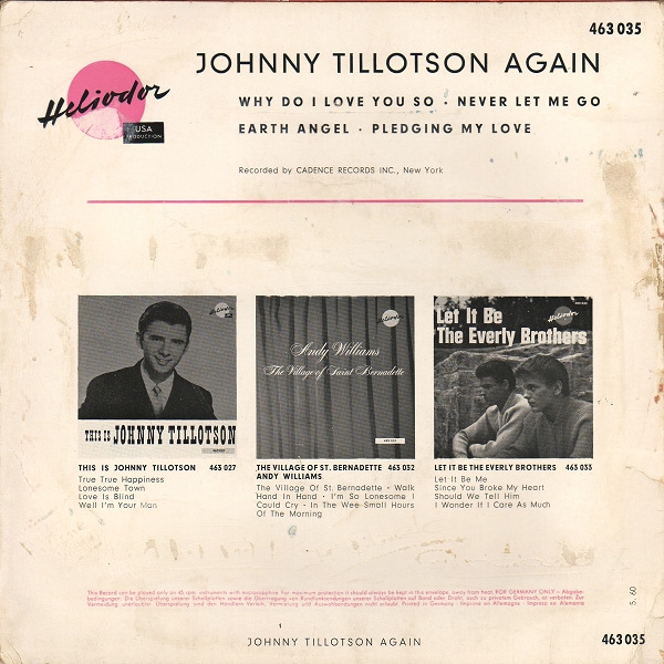 | Information: | Heliodor EP 46 3035 A Johnny Tillotson Again |