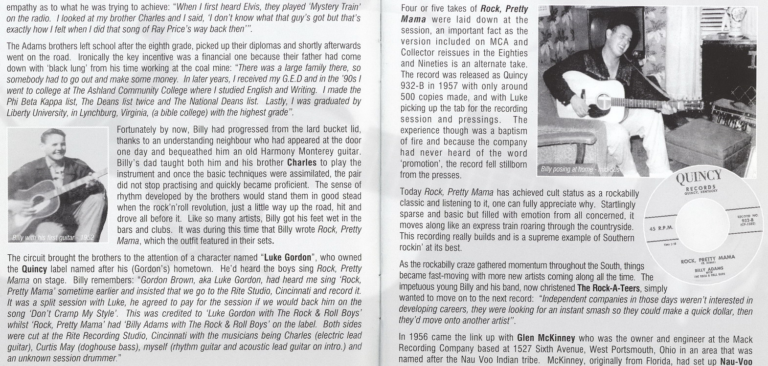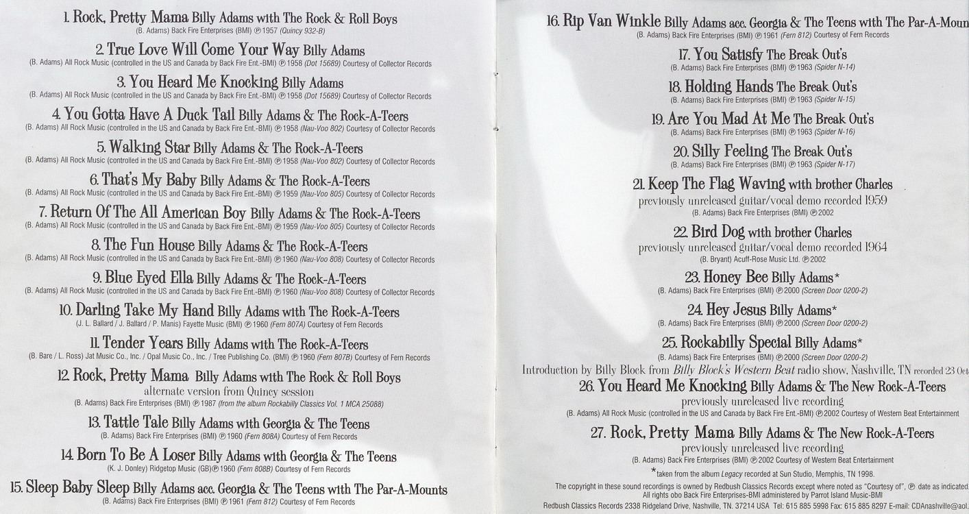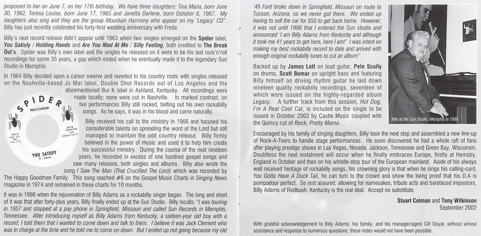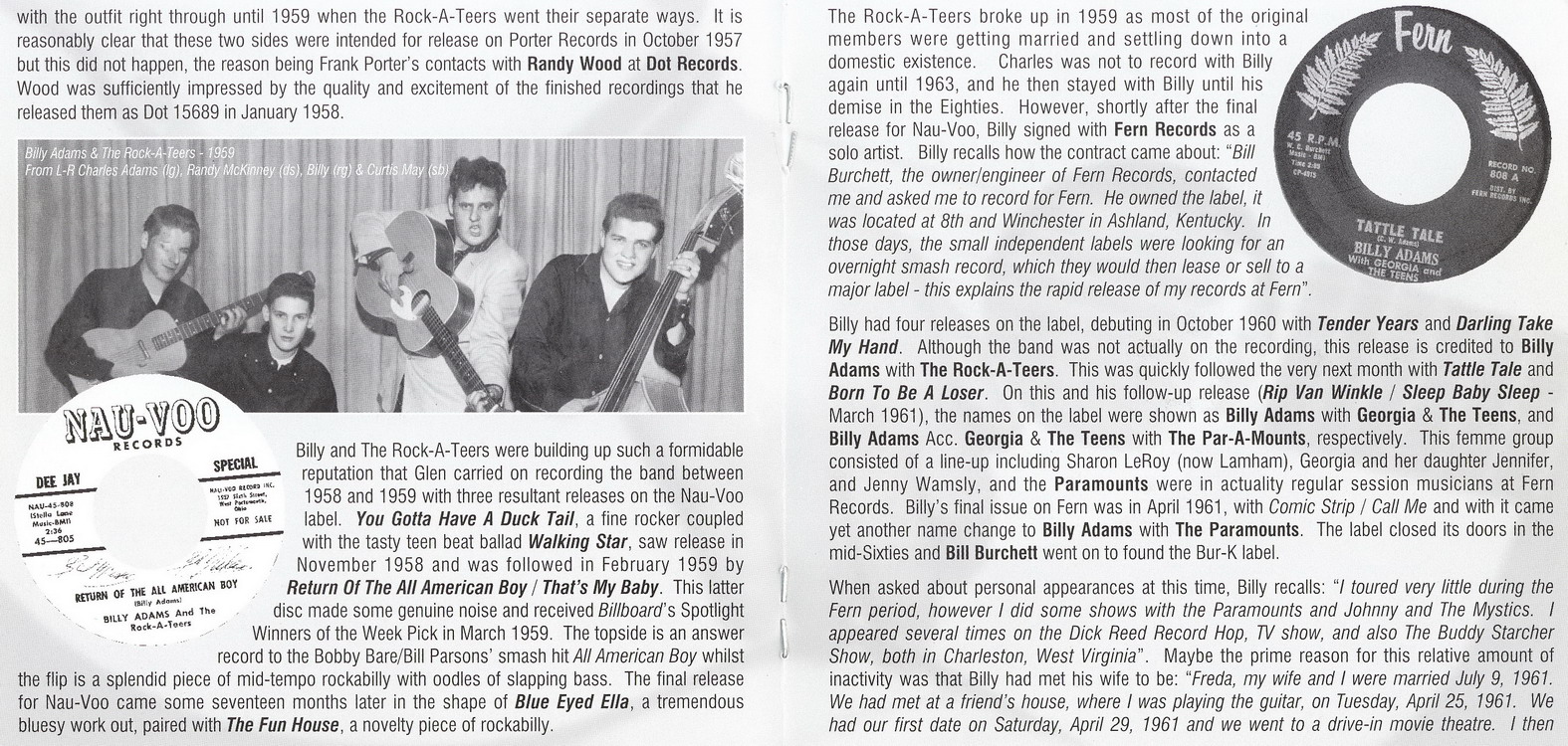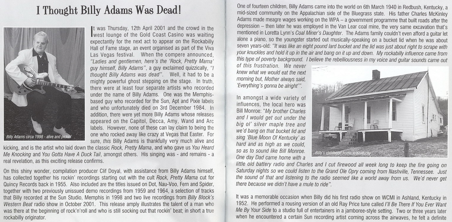Willie Murray Adams, geboren am 6. März 1940 in Red Bush, Kentucky, hatte als Billy Adams, meist mit den Rock-A-Teers (Charles Adams, Randall McKinney, Curtis May und er selbst), folgende Singles veröffentlicht: