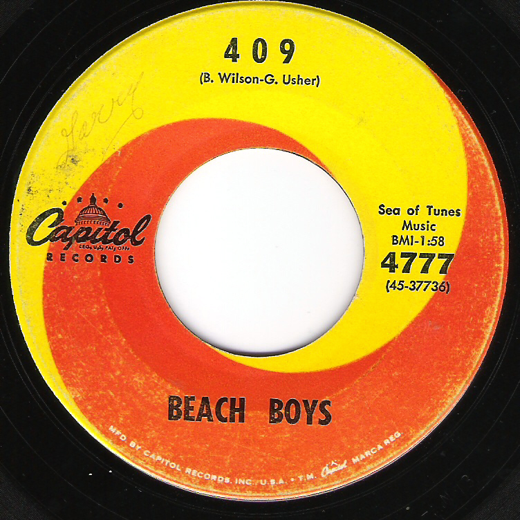 endlich habe ich mich mal meines verlorengegangenen Beitrags erinnert und scanne das Sleeve (und auch die beiden Plattenseiten) von "Surfin' Safari" / "409" (Capitol 4777,1962) nochmal ein.