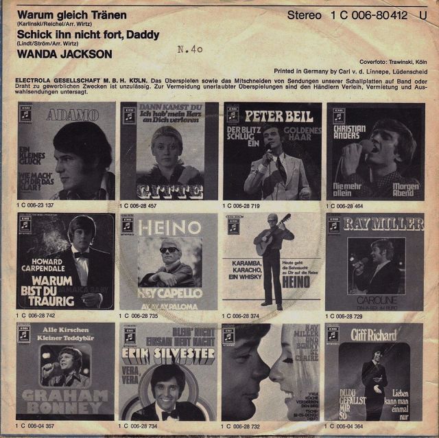 für die später Geborenen und um Gerd's "alte" Wanda Jackson Rubrik nicht zu zerstören: hier die späteren deutschen Singles! So zu Abrundung ihres Schaffens...