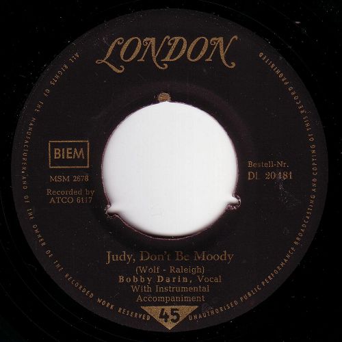 09 58....DL 20 181....Bobby Darin, Vocal With Instrumental Accompaniment..Splish Splash/Judy, Don't Be Moody (ATCO 6117)