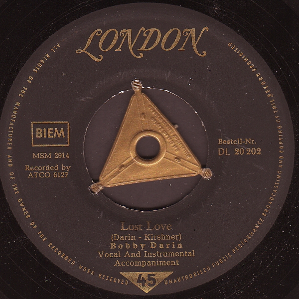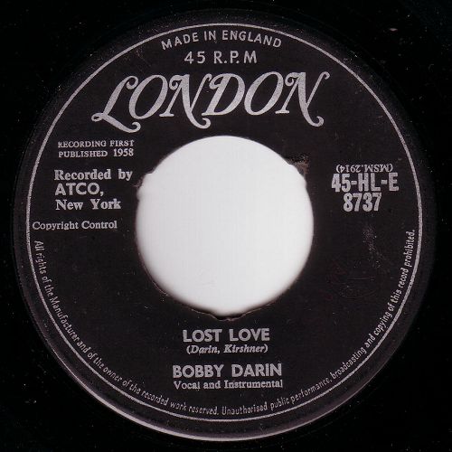 11 58....DL 20 202....Bobby Darin Vocal And Instrumental Accompaniment..Lost Love/Queen Of The Hop (ATCO 6127)