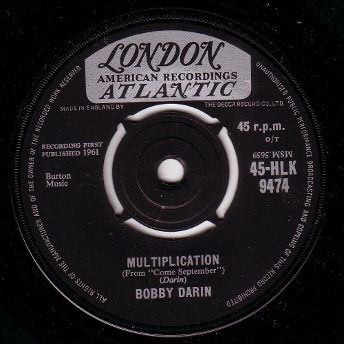 02 62....ATL 70.073....BOBBY DARIN Arr. & Cond. by Jimmy Maskell..Multiplication/Irresistible You (ATCO 6214)