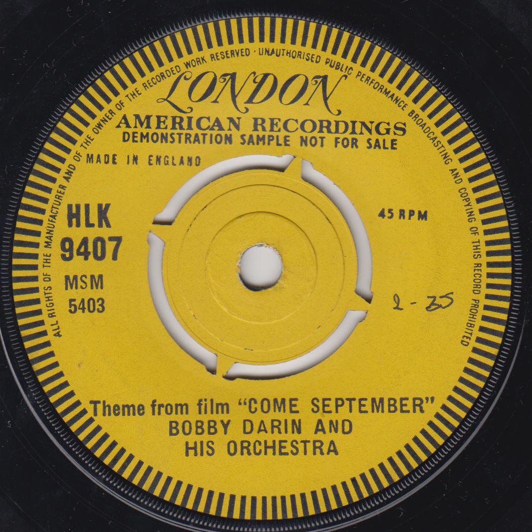 10 61....ATL 70 054....BOBBY DARIN & HIS ORCHESTRA Arranged & Conducted by Robert Mersey..Theme From "Come September"/BOBBY DARIN & HIS ORCHESTRA Arranged & Conducted by Fred Norman Bobby Darin on the Harpsichord..Walk Bach To Me (ATCO 6200)