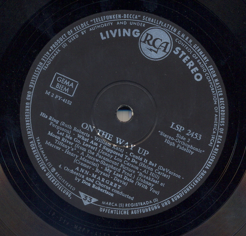 heute möchte ich die Deutsche Pressung von Ann-Margret - Bachelors` Paradise auf RCA LSP-2659 vorstellen, und Euch gleich um Unterstützung bezüglich Unklarheiten bitten.
