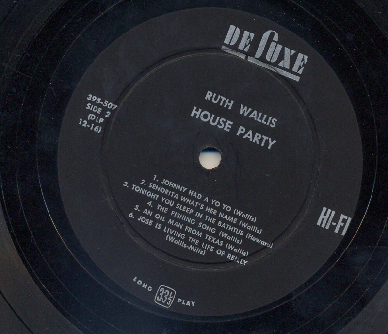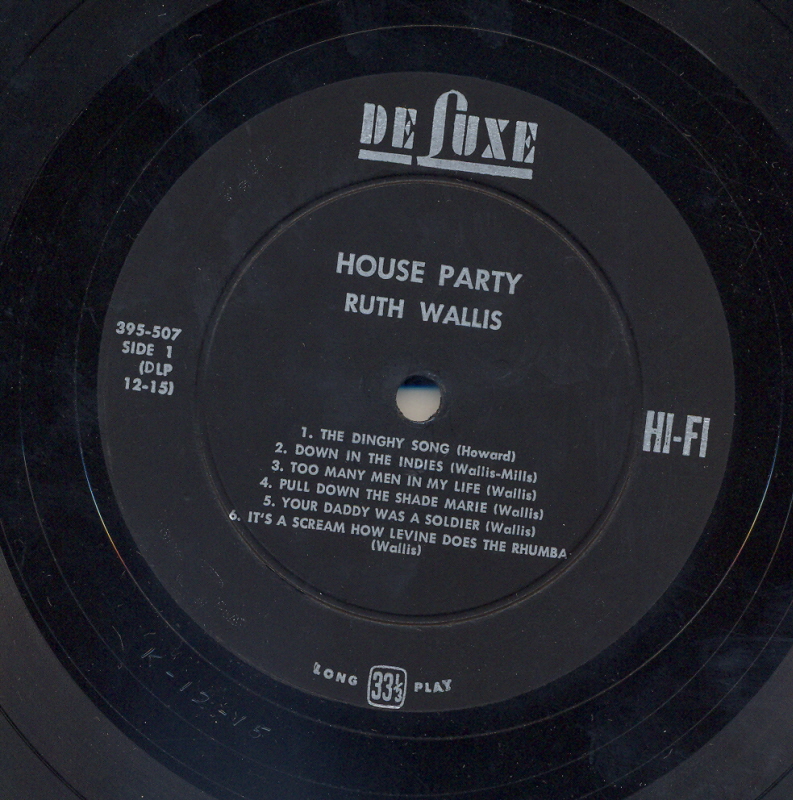 US DE LUXE LP NR : 395-507 -MONO - RUTH WALLIS - HOUSE PARTY ++