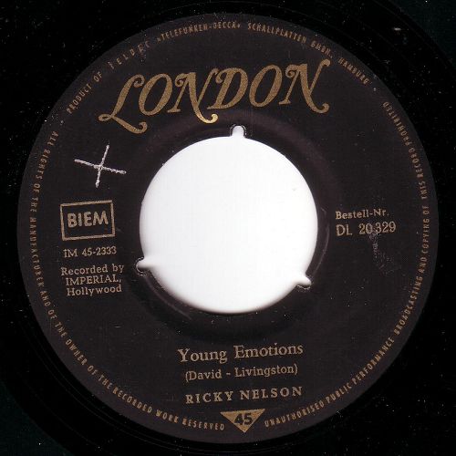 Die folgende Aufstellung zeigt, wie Ricky Nelson singelmäßig bis 1963 bei uns in Erscheinung trat (die Links bereits vorhandener Scans befinden sich unter der jeweiligen Eintragung):