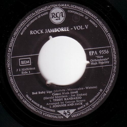 Auch auf der TELDEC-EP-Serie "ROCK JAMBOREE - VOL. V" war Teddy Randazzo mit einem Titel vertreten. Leider fehlt mir das EP-Cover, daher scanne ich zwecks Info beide Label-Seiten mit allen Interpreten
