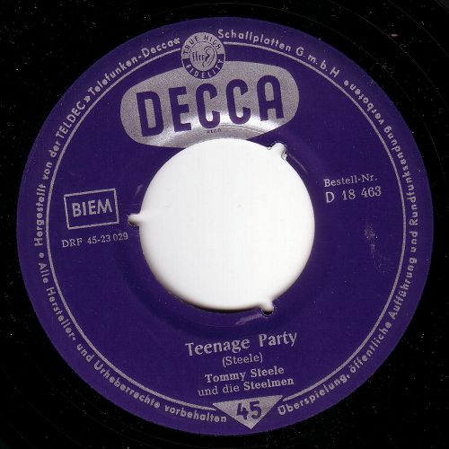 07 57....D 18 463....Tommy Steele und die Steelmen..Teenage Party/Knee Deep In The Blues (UK: DECCA 10849)