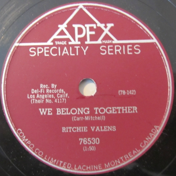 07 59....B 45-1332....RITCHIE VALENS with Orchestra..Come On Let's Go/Dooby Dooby Wah (DEL FI 4106/LP 1201)