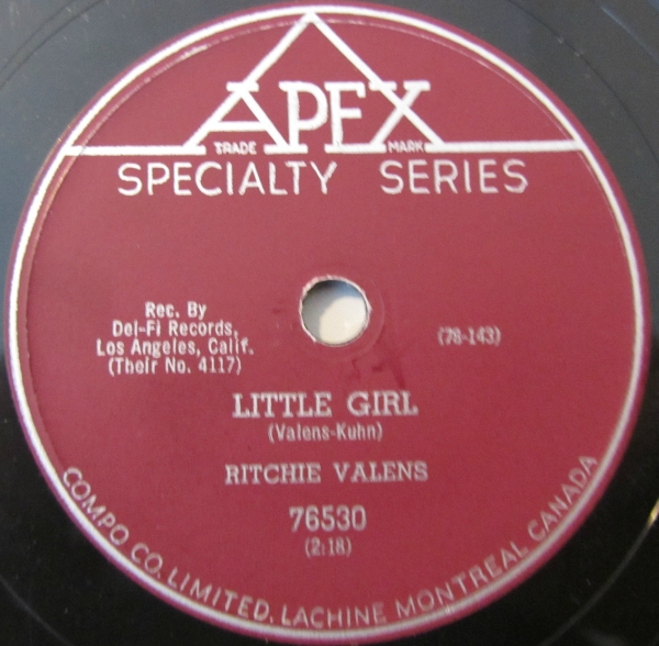09 59....66 918 A....RITCHIE VALENS..OOH MY HEAD/ B LITTLE GIRL (DEL FI LP 1201/4117)