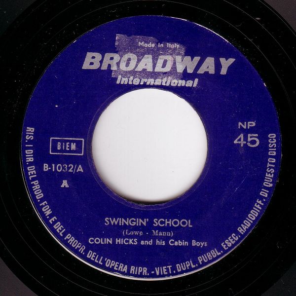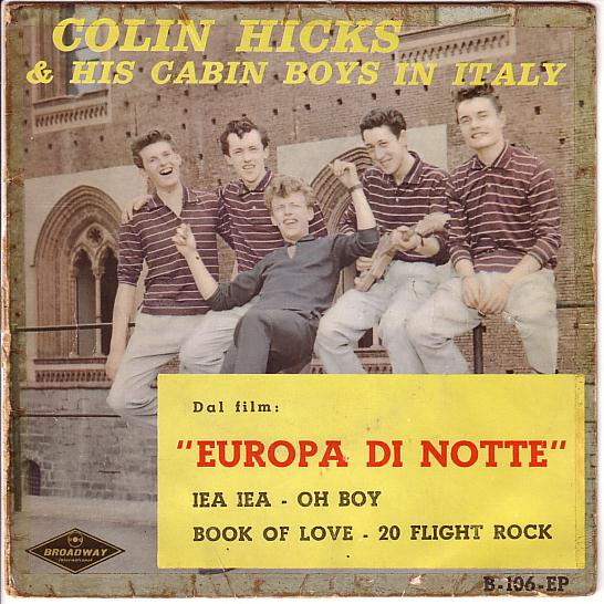 Colin never sold many records despite following Tommy's footsteps to the famous 2-'I's coffee bar in Soho London. Tommy Steele's manager, John Kennedy, signed him up to sing in a nightclub in London's posh Mayfair district. Then three TV guest spots and a top-of-the-bill tour. A recording contract with Pye records and TV appearances with his backing group 'The Cabin Boys' in 1958. Jimmie Nicol used to get up regularly at the 2 I's and Bobby Green arranged an audition for Colin's backing group The Cabin Boys.