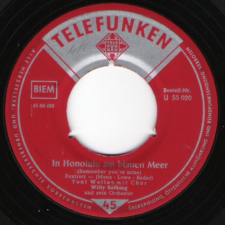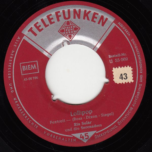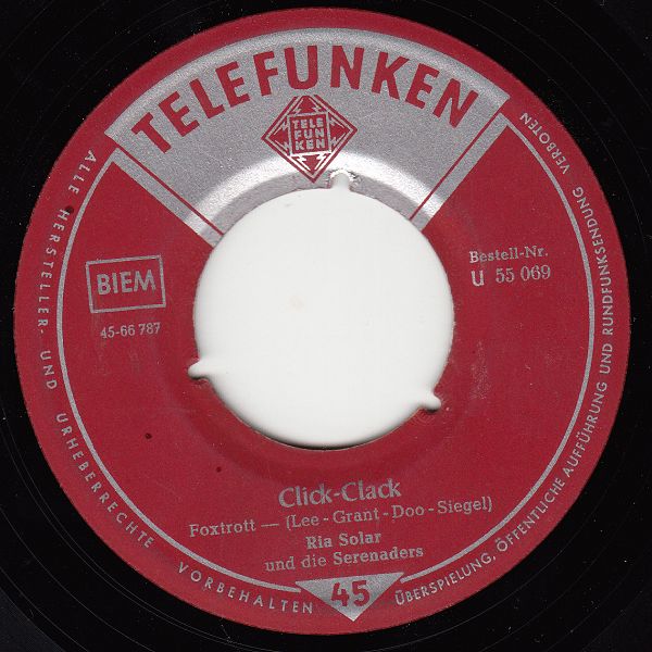 heute war Flohmarkt. Viel habe ich nicht gefunden, aber eine Split-Single von 1957 mit einer solide rockenden Ria Solar auf der einen und Toni Weller (mit einer eher faden Version von Pat Boones "Remember You're Mine") auf der anderen Seite möchte ich dann doch vorstellen.