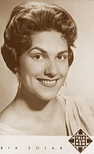 Ria Solar ist eigentlich die 1936 in den Niederlanden geborene Marie Dieke, die unter diesem Namen auch ein paar Hits in Schweden hatte. Für deutsche Ohren klingt "Marie Dieke" vielleicht doch etwas zu sehr nach friesischer Kuhmagd, und so entschloss man sich, ihr ein etwas glamouröseres und exotischeres Pseudonym zu verpassen.