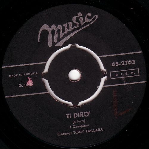 Antonio Lardera wurde am 30. Juni 1936 in Campobasso in der Region Molise, Italien, geboren. Schon als junger Mann begann er in Gruppen zu singen. Er war ein Bewunderer von Frankie Laine und Tony Williams von den Platters. 1957 begann er bei einer Firma die viel mit Musik zu tun hatte als Mädchen für alles wo er vom Plattenboss Walter Gürtler entdeckt und für sein Label MUSIC verpflichtet wurde und wo er auch seinen Künstlernamen Tony Dallara erhielt.