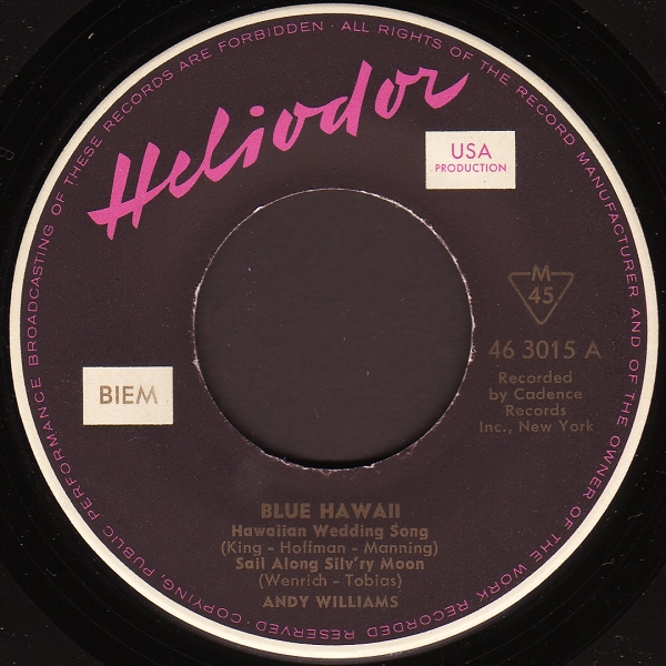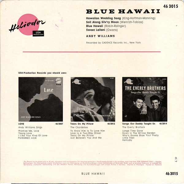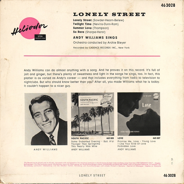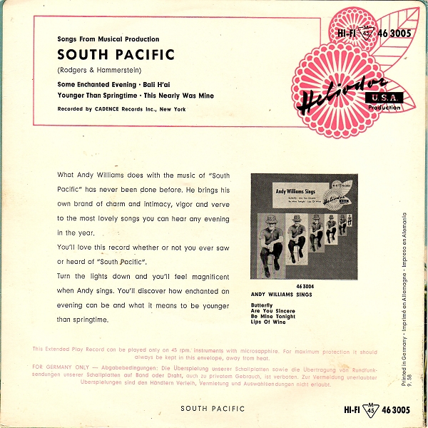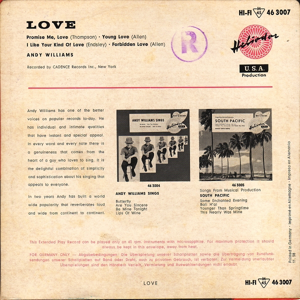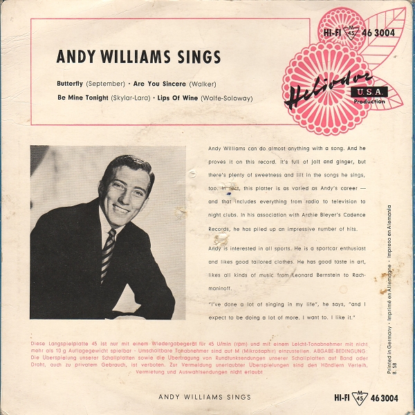 | Information: | Andy Williams Heliodor EP 46 3004 |