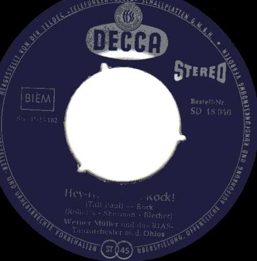Auf Decca wurde unter der Best.-Nr. SD 18 946 wurden die Titel Hey-Hey! Rock-Rock! und Jive Time veröffentlicht.