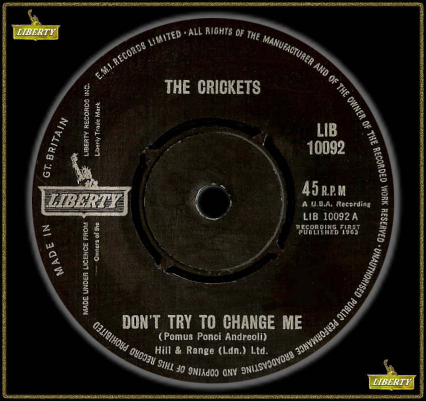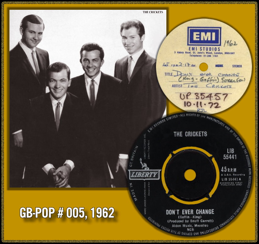 In 1962, The Crickets' version of the Gerry Goffin–Carole King song "Don't Ever Change" (Liberty Records) reached the top 5 in the British single charts. The Crickets would also release in 1962 their album entitled "Bobby Vee Meets the Crickets" with Bobby Vee singing on lead vocals.