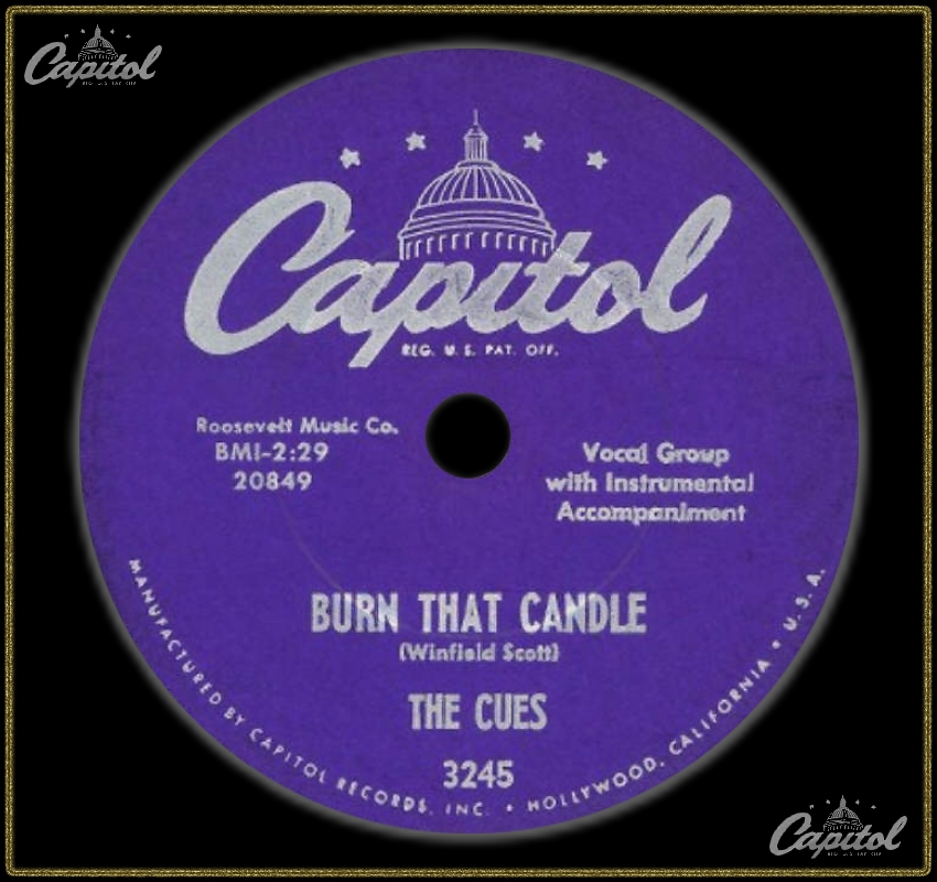 10 55....F3245....THE CUES..(Lead: Ollie Jones)..Oh My Darlin' (45-20857)/THE CUES..(Lead: Jimmy Breedlove)..Burn That Candle (45-20849)