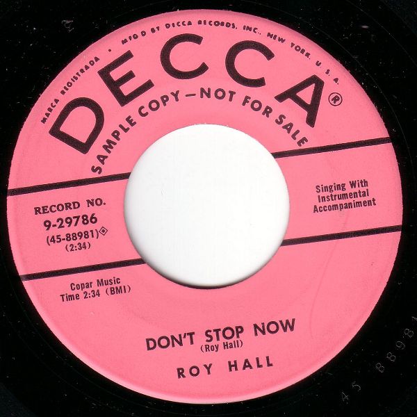01 56....9-29786....ROY HALL..Don't Stop Now (45-88981)/See You Later, Alligator (45-88982)