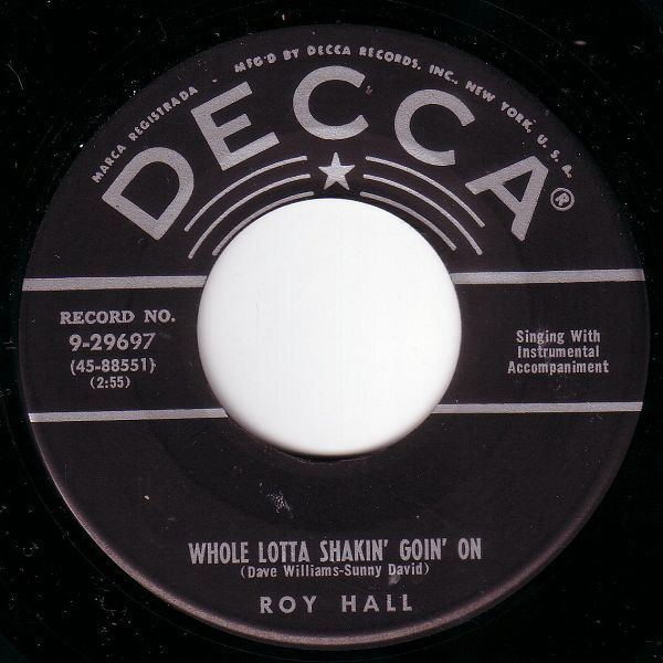 10 55....9-29697....ROY HALL..Whole Lotta Shakin' Goin' On (45-88551)/All By Myself (45-88552)