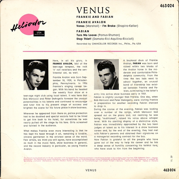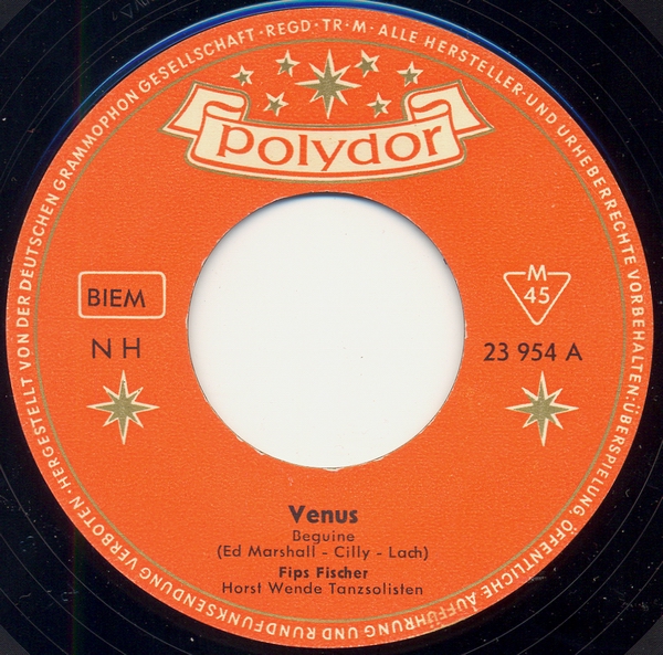 FISCHER, FIPS , Sänger, 1959 Polydor (23954 "Venus"-Solo/"Bleib’ Mein Darling" & Die TEDDIES, 24093 "Strahlender Himmel-Strahlendes Glück"/"Wo Du Auch Bist ... (Ich Werde Bei Dir Sein)")