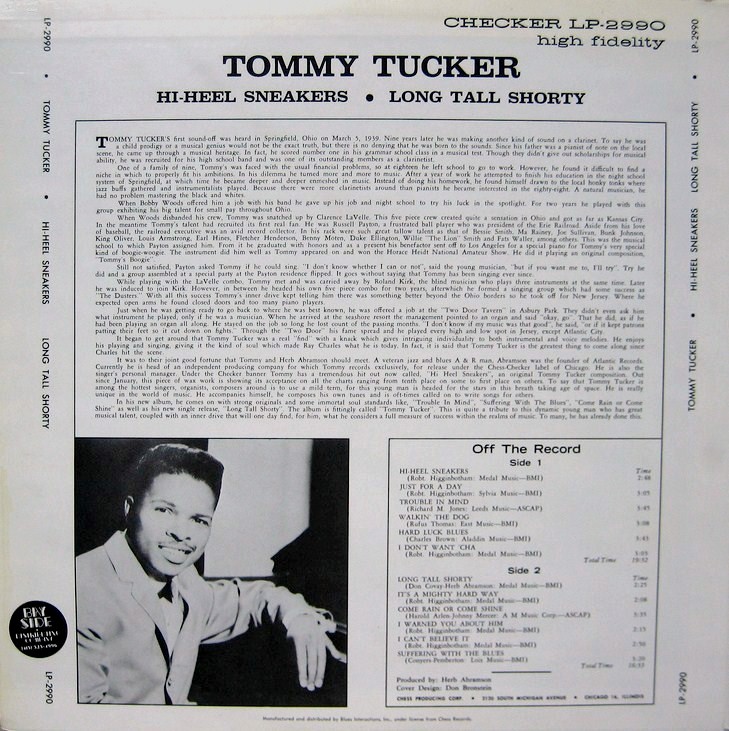 Tee Tucker war Tommy Tucker unter Pseudonym. Er war seit ca. 1951 als Pianist, Klarinettist und Sänger Mitglied in einigen Bands bzw. Gruppen (The Bobby Wood Orchestra, 1951 The Resident House Band at the Farm Dell Club in Dayton, The Cavaliers, 1955 Quintet The Belvaderes, 1956 The Dusters, 1957 The Resident House Band at The Frolic Night Club in Springfield, Ohio) tätig, bevor von ihm im Oktober 1961 auf Atco 6208 "Rock & Roll Machine"/"My Girl (Realy Love Her So)" erschien und er von 1964-67 als Tommy Tucker bei Checker recordete.