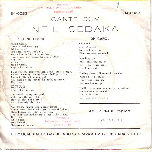 Brasilianisches klc von NEIL SEDAKA auf RCA, also klc´s doch keine rein deutsche angelegenheit !??!