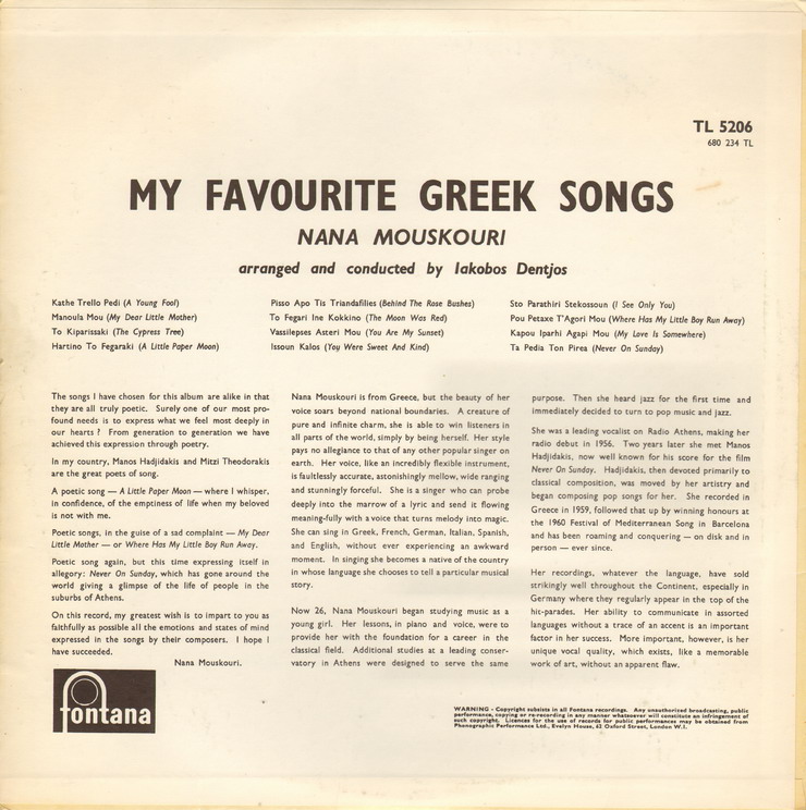 heute feiert die Stimme Griechenlands ihren 75. Geburtstag. Bevor sie 1961 mit ihrem Schlager "Weiße Rosen aus Athen" in Germany gleich einen Evergreen landete, gehörte ihre Liebe dem Jazz. Nana Mouskouri hat in vielen Sprachen gesungen. Ein paar meiner Lieblingsplatten stelle ich hier vor. Ihr zu Ehren.