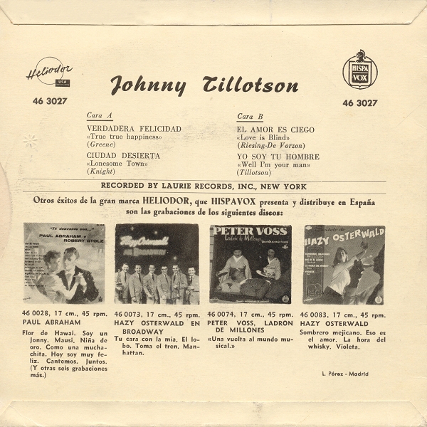 | Information: | Johnny Tillotson - Heliodor 46 3027 - Spanien |