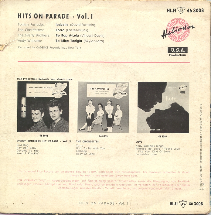 | Information: | Everly Brothers Heliodor 46 3008 - Dänemark |