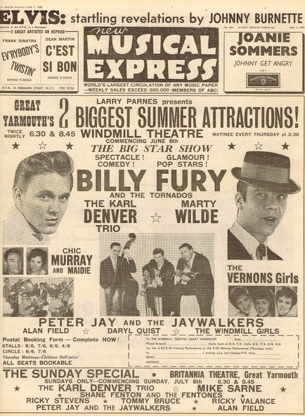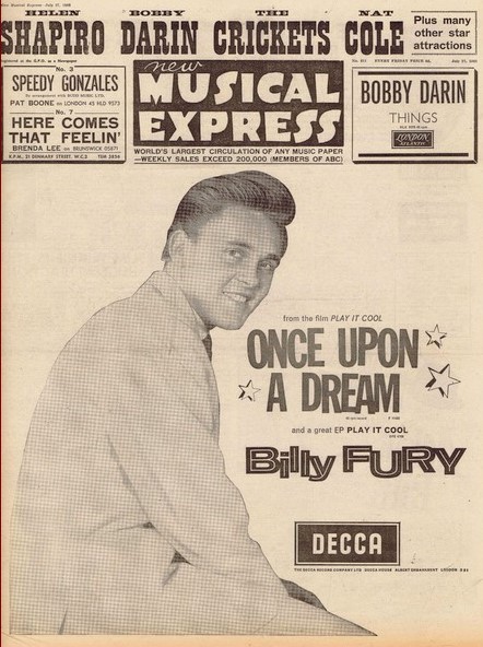 Billy Fury hat ca 5mal als Titel für den New Musical Express gedient. Hier die Ausbeute.