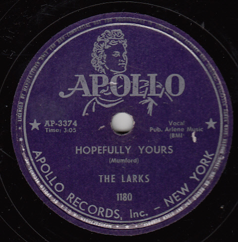 Bei der ersten Veröffentlichung “When I Leave These Prison Walls“ (Apollo 1180) sang Eugene "Gene" Mumford die Lead-Stimme, welch’ passender Titel zur Vergangenheit des Sängers. Die dritte Schallplatte führte mit “Eyesight To The Blind“ zum Charts-Einstieg. Es war die erfolgreichste Zeit der Larks mit Tourneen und TV-Auftritten bei Arthur Godfrey und Perry Como.