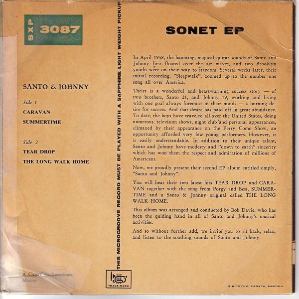 Sonet Single Nr. T 7129 -(Orig. Canadian American Master ) - Santo & Johnny mit
