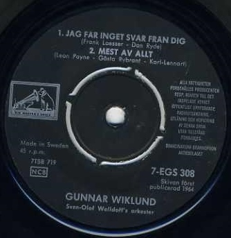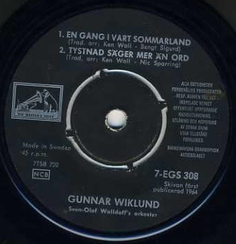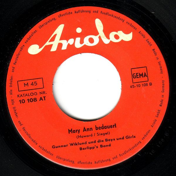 Hier nun Gunnar Wiklund mit einer ARIOLA-Single vom Frühjar 1963, die auf beiden Seiten, zwar ohne Klammervermerk, US-Titel aus dem Jahre 1962 in der deutschsprachigen Version aufweist.
