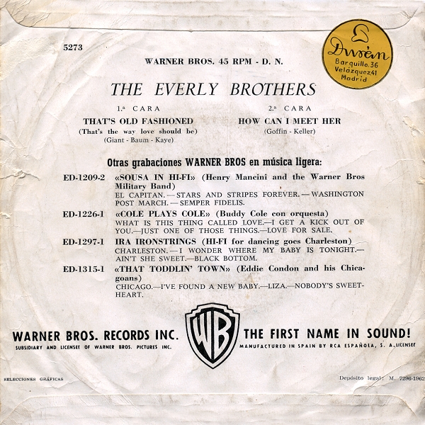 nun folgen die Single Platten der Everly Brothers von Warner Bros, Spanien.