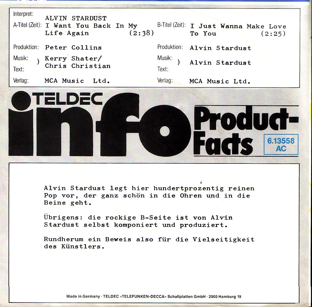 Comeback-Top-Hit gelang, den es auch in Deutschland bei Stiff/Teldec gab.