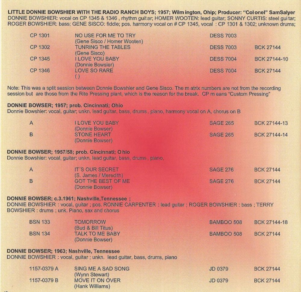 DONNIE BOWSHIER (auch: Donnie Bowser; 14.4.1937