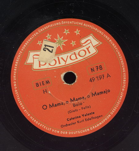 "O Mama, O Mama, O Mamajo"-März 1954 Erfolg mit erster deutschsprachiger Schallplatte,